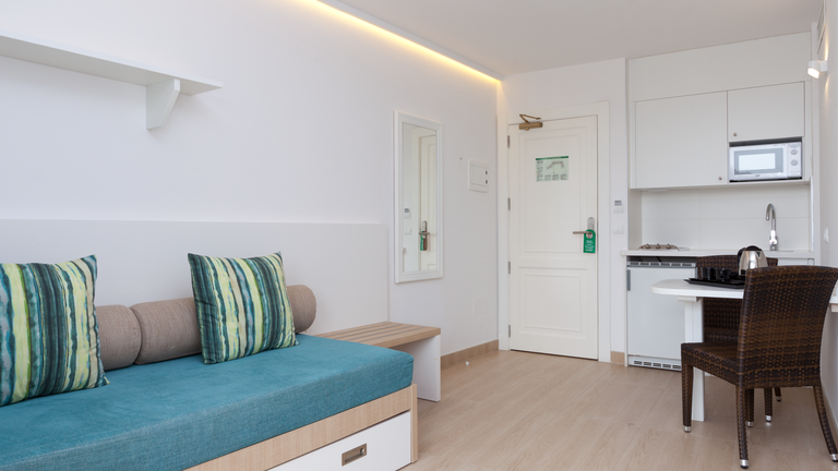 Doble room ( two singles beds ) + sofá bed with pull out bed,kitchen, bathroom with shower, hairdryer,telephone , balcony,free safe , air conditioned, kettle, televisión with satelliter channels.