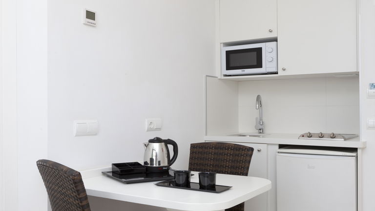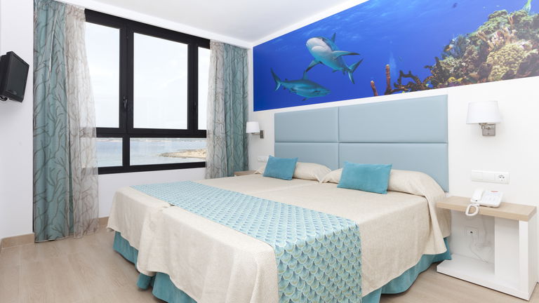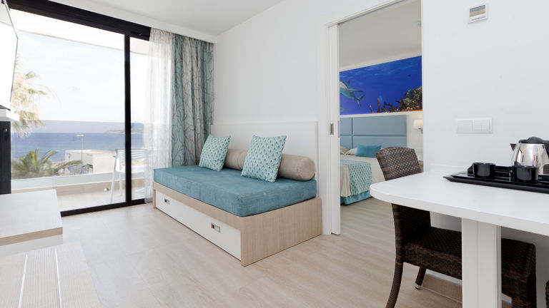 Doble room ( two singles beds ) + sofá bed with pull out bed,kitchen, bathroom with shower, hairdryer,telephone , balcony,free safe , air conditioned, kettle, televisión with satelliter channels and sea view.